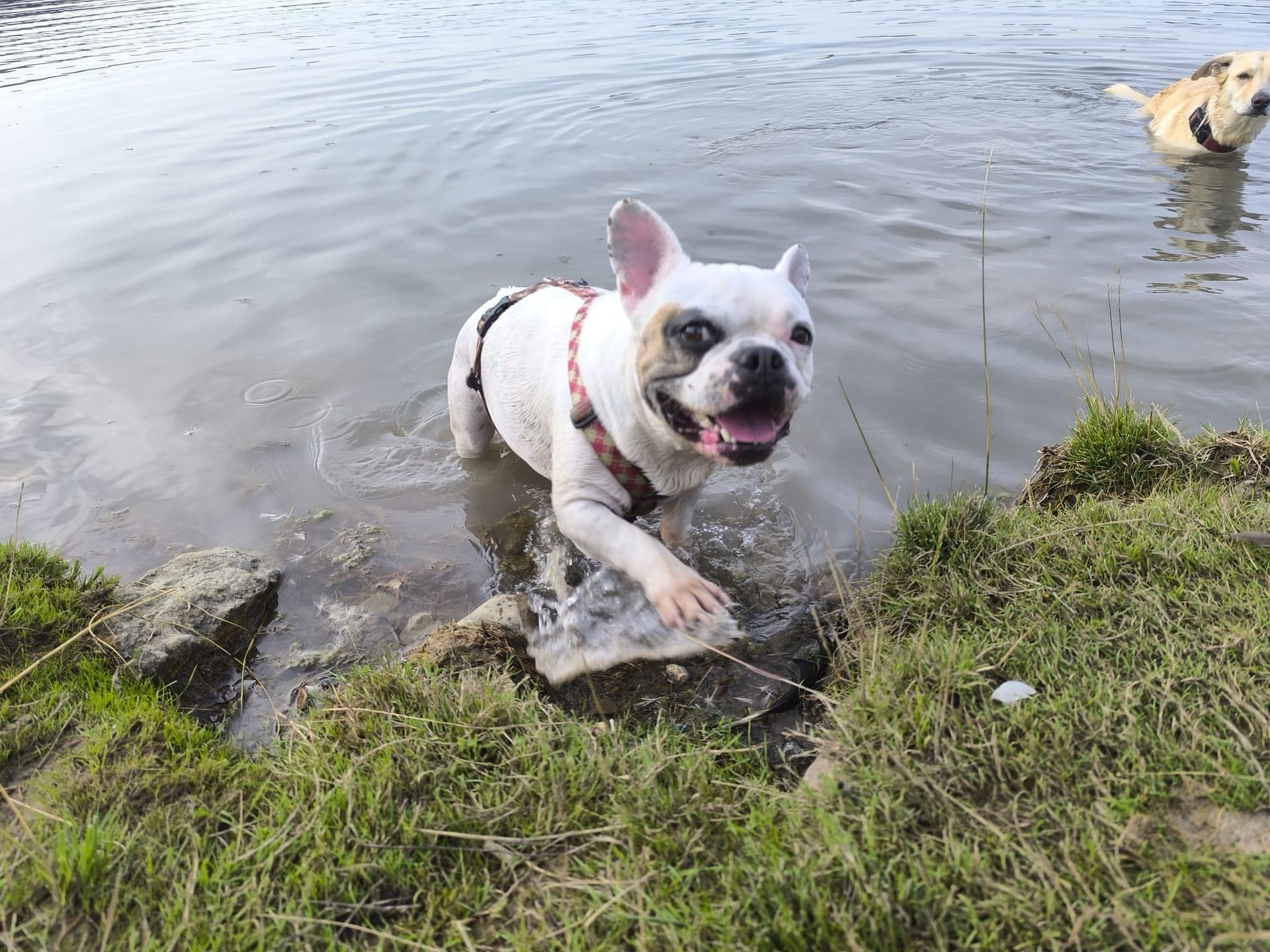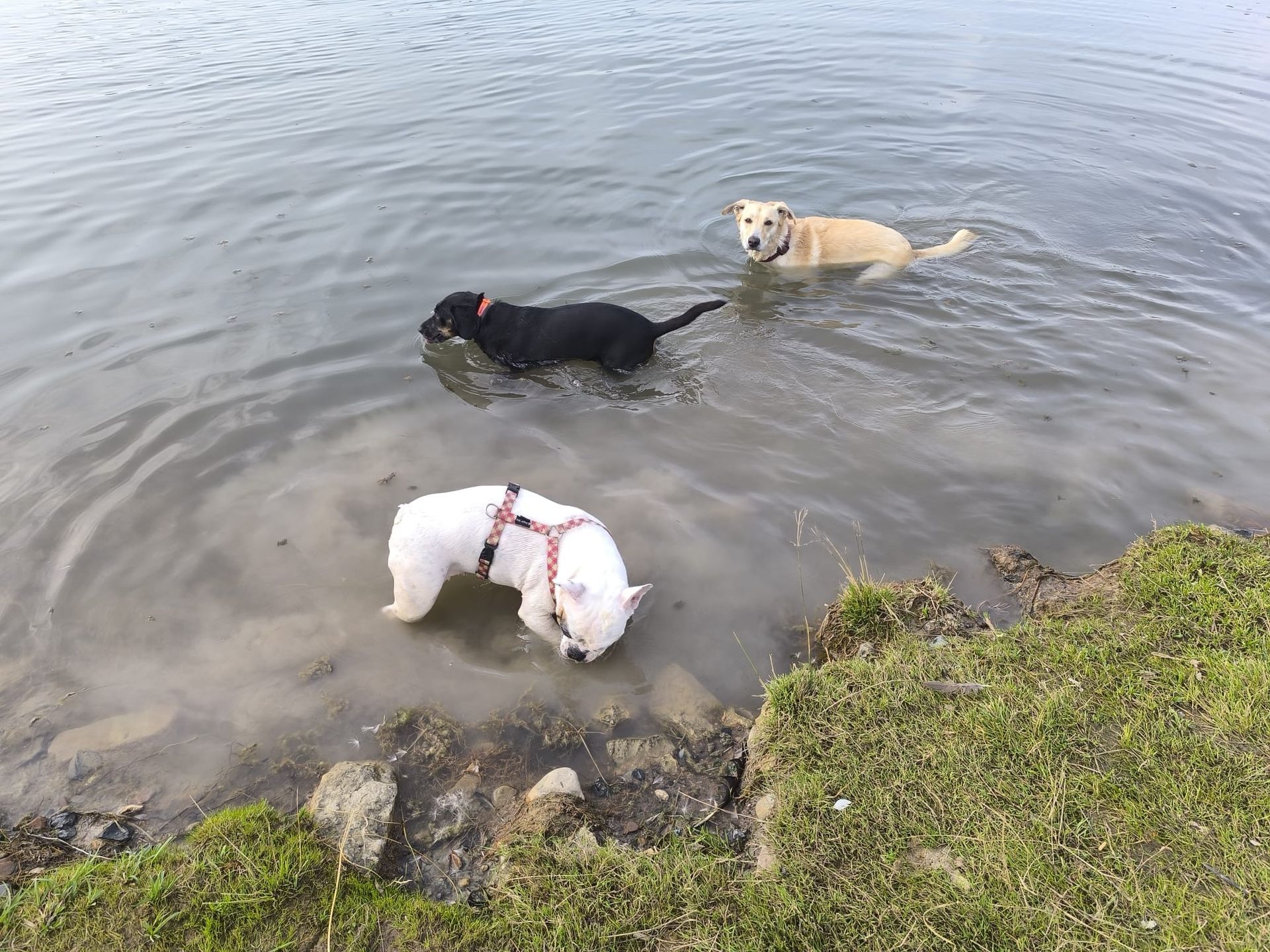 Direkt am Anfang liegt ein herrlicher See, der besonders im Sommer für die Hunde zur Abkühlung, zum Schwimmen und herumpämpeln genau richtig ist. Gleich dahinter beginnen weitläufige Felder, Wiesen und Wald, die einen schönen Gassigang mit den Hunden ermöglichen.